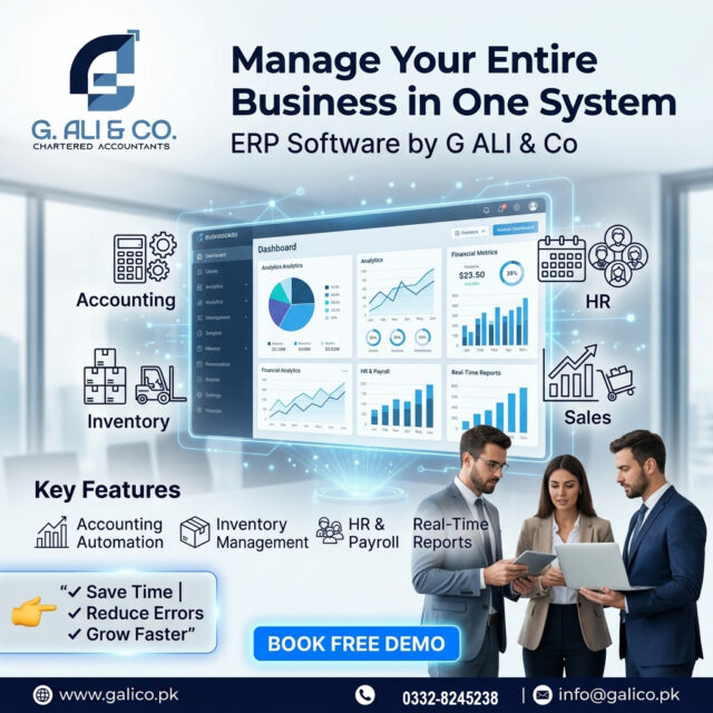 ERP software is no longer a luxury—it’s a necessity for businesses aiming to grow and stay competitive. By integrating accounting, inventory, and HR into one system, ERP transforms operations and improves efficiency. G ALI & Co provides reliable and customized ERP solutions that help businesses streamline processes, reduce costs, and make smarter decisions.